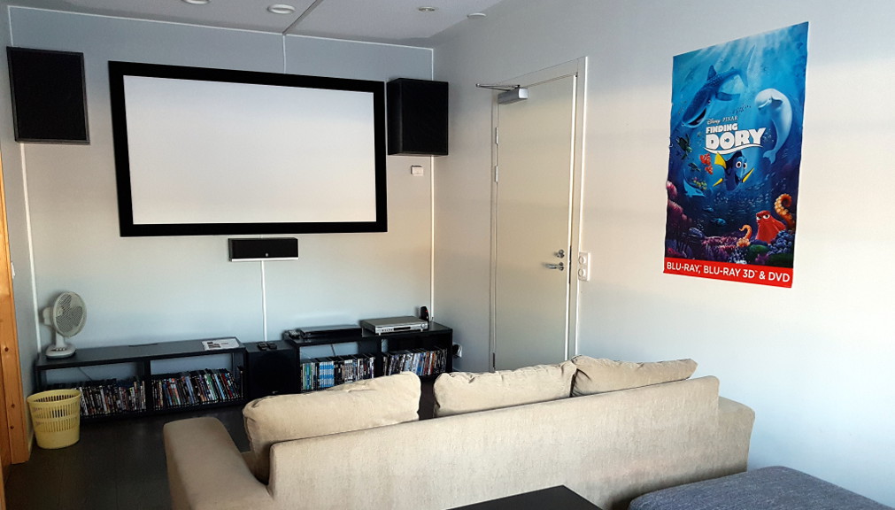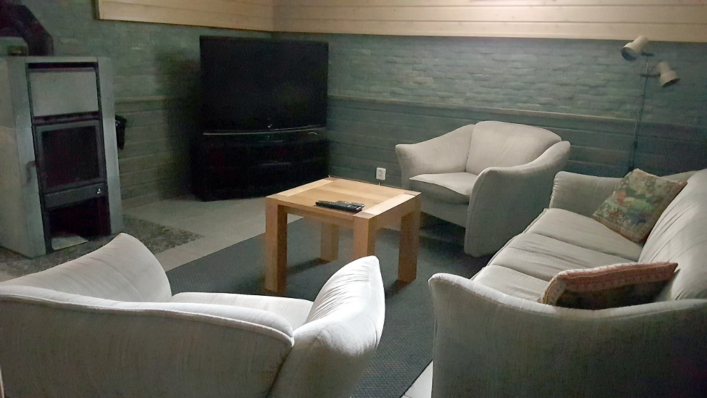 - Takkahuoneessa takka, taulutelevisio ja dvd-soitin.